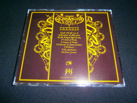 Acherontas - Theosis. 2024 reissue on CD format of their infamous 2010 2nd full length album with 9 tracks of Black Metal from Greece. Limited Edition to 300 copies comes with 8 pages booklet lyrics included. Sealed Item. Recommended for fans of Necromantia, Watain and Rotting Christ.