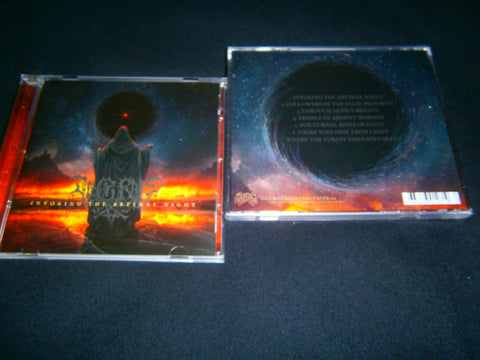 Aegrus - Invoking the Abysmal Night. CD format of their 2023 4th full length album with 7 tracks of Black Metal from Finland. Limited Edition comes with 20 pages booklet lyrics included. Sealed Item. Recommended for fans of Sakrista, Warmoon lord and Azaghal.