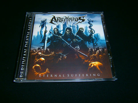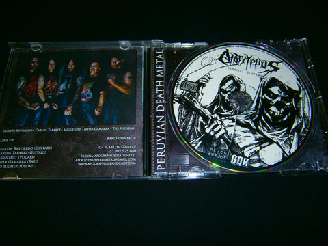 Apocryphus - Eternal Suffering. 2021 reissue on CD format of their 2019 first full length album with 9 tracks of Obscure Death Metal from Peru. Limited Edition to 300 copies comes with 12 pages booklet lyrics included. Sealed Item. Recommended for fans of Mortem, Shub Niggurath and Pestilence.