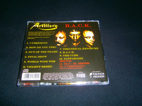 Artillery - B.A.C.K. 2017 reissue on CD format of their 1999 4th full length album with 13 tracks (including live bonus) of Thrash Metal from Denmark. Limited Edition comes with 16 pages booklet lyrics included. Sealed Item. Essential for Collectors and Recommended for fans of Forbidden, Razor and Metal Church.