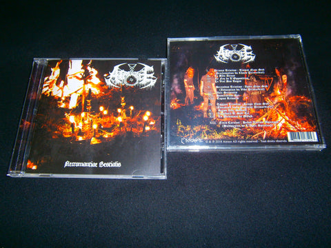 Atroce - Necromantiae Bestialis. CD format of their 2018 2nd full length album with 13 tracks of Satanic Death Metal from Canada. Limited Edition comes with 24 pages booklet including all lyrics, song descriptions + an artwork dedicated for each song. Sealed Item. Recommended for fans of Possessed, Deicide and Angelcorpse.