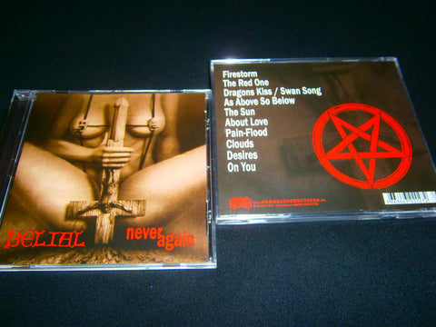 Belial - Never Again. 2024 reissue on CD format of their infamous 1993 first full length album with 10 tracks of Black Death Metal from Finland. Limited Edition comes with 12 pages booklet lyrics included. Sealed Item. Essential for Collectors and Recommended for fans of Miasma, Grotesque and Abhorrence.