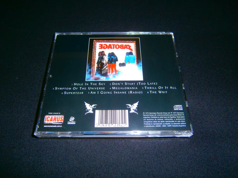 Black Sabbath - Sabotage. 2015 reissue on CD format of their 1975 6th full length album with 8 tracks of their classic sound. Limited Edition comes with 12 pages booklet lyrics included. Sealed Item. Essential for Collectors and Recommended for fans of Saint Vitus, Candlemass and Electric Wizard.