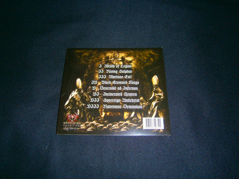 BLACKMASS - Enthroned Legion. Digipak CD format released in 2019 of their 3rd full length album with 8 tracks of Black Metal from Brazil. Limited Edition comes with 16 pages booklet lyrics included. Sealed Item. Recommended for fans of Setherial, Dark Funeral and Sargeist.