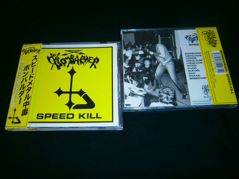Bombarder - Speed Kill. 2021 reissue on CD format of their infamous 1989 first full length album with 11 tracks of Speed Thrash Metal from Bosnia & Herzegovina. Limited Edition comes with obi strip and 4 pages booklet lyrics included. Sealed Item. Essential for Collectors and Recommended for fans of Kat, Evil Blood and Razor.