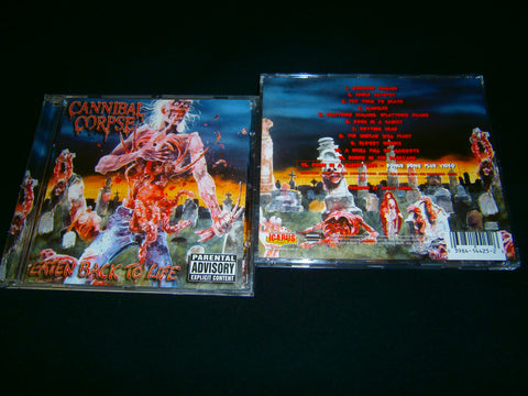 Cannibal Corpse - Eaten Back to Life. 2010 reissue on CD format of their infamous 1990 first full length album with 11 tracks + 1 live video bonus track. Limited Edition comes with 12 pages booklet lyrics included. Sealed Item. Essential for Collectors and Recommended for fans of Suffocation, Bloodbath and Vomitory.