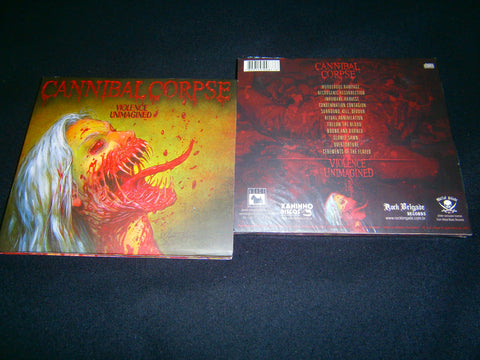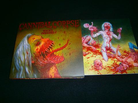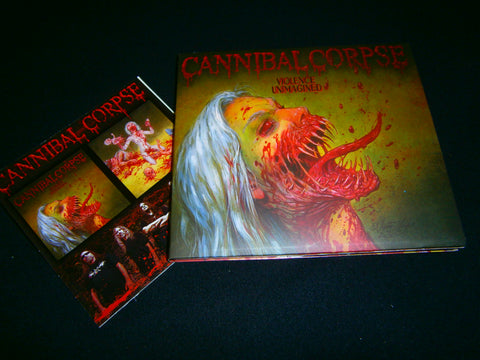 Cannibal Corpse - Violence Unimagined. Digipak CD format of their 2021 full length album with 11 tracks of Death Metal from the States. Limited Edition comes with 28 pages booklet lyrics included + sticker. Sealed Item. Recommended for fans of Suffocation, Malevolent Creation and Monstrosity.