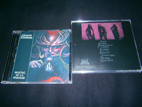 Corpsehammer - Metal de la Muerte. CD format of their 2019 first full length album with 9 tracks of Death Thrash Black Metal from Sweden. Limited Edition comes with 8 pages booklet lyrics included. Sealed Item. Recommended for fans of Mutilator, Destroyer 666 and Vulcano.
