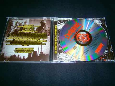 Crematorio - El Rostro del la Opresion. 2021 reissue on CD format of their infamous 1995 first full length album with 12 tracks of Death Grind Core Metal from Argentina including 2 bonuses. Limited Edition comes with 8 pages booklet lyrics included. Sealed Item. Essential for Collectors and Recommended for fans of Terrorizer, Brutal Truth and Napalm Death.