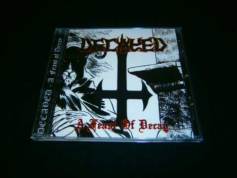 Decayed - A Feast of Decay. CD format that compiles 15 tracks recorded between 1993/2011 and 5 unreleased tracks, making a total of 20 tracks of Lusitanian Black Metal. Limited Edition to 400 copies comes with 12 folded pages poster included. Sealed Item. Essential for Collectors and Recommended for fans of Mortuary Drape, Root and Gorgon.