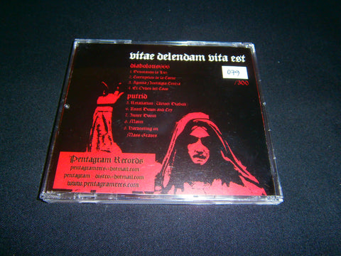 Diabolous666 / Putrid - Vitae Delendam Vita Est. Split CD format released in 2013 between these two Peruvian Black Death Metal bands. Limited Edition to 300 copies comes with slipcase and three-folded panels lyrics included. Sealed Item. Recommended for fans of Impurity, Angelcorpse and Abhorrence.