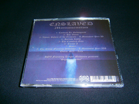 Enslaved - Monumension. 2019 reissue on CD format of their 2001 6th full length album with 10 tracks of Progressive Folk Black Metal from Norway. Limited Edition comes with 16 pages booklet lyrics included. Sealed Item. Essential for Collectors and Recommendd for fans of Borknagar, Bathory and Solstafir.