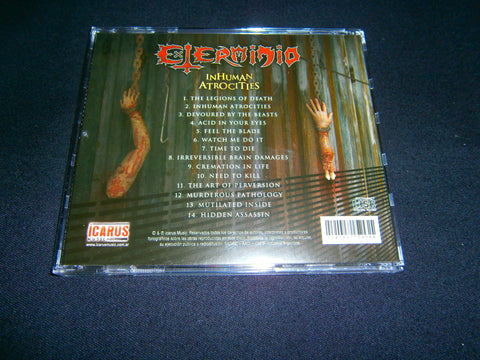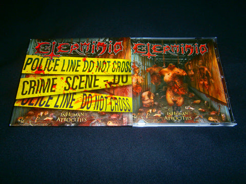 Exterminio - Inhuman Atrocities. CD format of their 2012 2nd full length album with 14 tracks of Death Metal from Argentina. Limited Edition comes with slipcase and 12 pages booklet lyrics included. Sealed Item. Recommended for fans of Suffocation, Malevolent Creation and Blood.