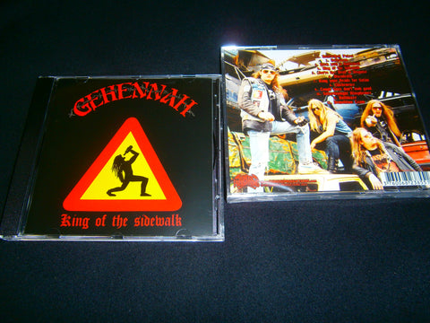 Gehennah - King of the Sidewalk. 2021 reissue on CD format of their infamous 1996 2nd full length album with 12 tracks (including bonus) of Black Thrash Metal from Sweden. Limited Edition comes with 12 pages booklet lyrics included. Sealed Item. Recommended for fans of Bulldozer, Aura Noir and Speedwolf.
