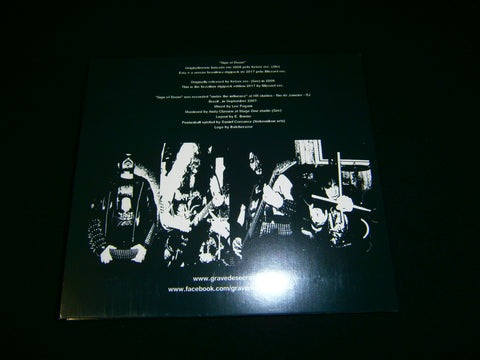 Grave Desecrator - Sign of Doom. 2017 reissue on digipak CD format of their infamous 2008 first full length album with 10 tracks of Death Black Metal from Brazil. Limited Edition to 500 copies comes with three-folded panels digipak lyrics included. Sealed Item. Essential for Collectors and Recommended for fans of Angelcorpse, Sarcofago and Holocausto.