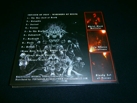 Impaler of Pest - Warlords of Death. Digipak CD format of their 2016 2nd full length album with 10 tracks of Perverse Black Metal from Colombia. Limited Edition to 300 copies. Sealed Item. Recommended for fans of Black Communion, Kulto Maldito and Impurity.