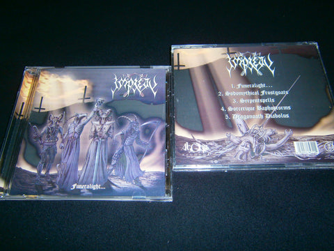 Impiety - Funeralight. 2006 reissue on CD format of their infamous 1997 EP with 5 tracks of Death Thrash Black Metal from Singapore. Limited Edition comes with alternate front artwork and 4 pages booklet. Sealed Item. Essential for Collectors and Recommended for fans of Abhorer, Angelcorpse and Order from Chaos.