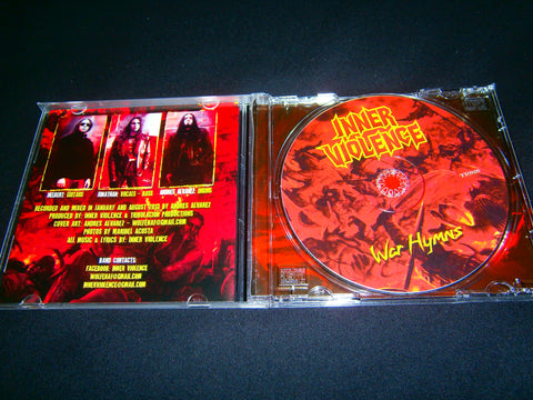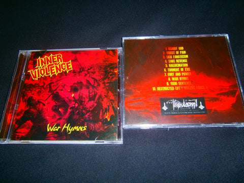Inner Violence - War Hymns. CD format of their 2013 first full length album with 10 tracks of Thrash Metal from Colombia. Limited Edition comes with three-folded panels lyrics included. Sealed Item. Recommended for fans of Violent Force, Destruction and Cruel Force.