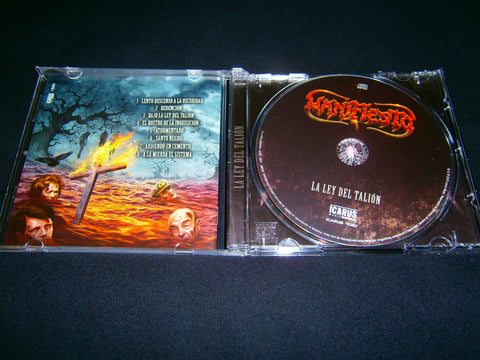 Manifiesto - La Ley del Talion. CD format of their 2022 3rd full length album with 8 tracks of Heavy Thrash Metal from Argentina. Limited Edition comes with 12 pages booklet lyrics included. Sealed Item. Recommended for fans of Hermetica, Logos and V8.