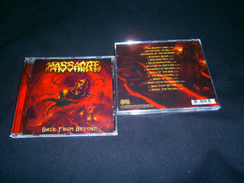 Massacre - Back from Beyond. 2023 reissue on CD format of their infamous 2014 3rd full length album with 14 tracks of Death Metal from Florida. Limited Edition comes with 16 pages booklet lyrics included. Sealed Item. Recommended of fans of Death, Bolt Thrower and Obituary.