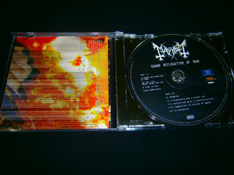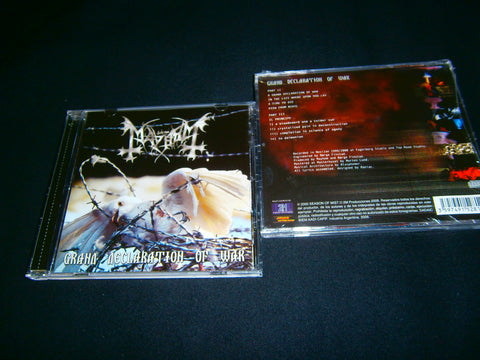 Mayhem - Grand Declaration of War. 2009 reissue on CD format of their infamous 2000 2nd full length album with 13 tracks of Black Metal from Norway. Limited Edition comes with 6 folded panels lyrics included Sealed Item. Essential for Collectors and Recommended for fans of Marduk, Horna and Darkthrone.
