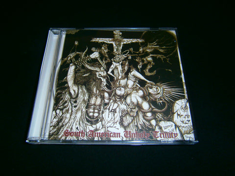 Nekro Cult Desecration / Vulvacult / Thy Dominion - South American Unholy Trinity. 3-way split CD format between these three South American hordes released in 2023. Limited Edition to 300 copies comes with 4 pages booklet. Sealed Item. Recommended for fans of Insulter, Sarcofago and Holocausto.