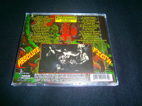 Nekro Drunkz - Absolute Filth. CD format of their 2015 2nd full length album with 33 dirty tracks of Death Thrash Grind Metal from Porland-Oregon. Limited Edition comes with 8 pages booklet. Sealed Item. Recommended for fans of Abscess, Blood and Impetigo.