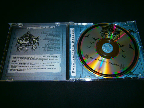 Nekromantie - Resurreccion Maldita. 2020 reissue on CD format of their 2006 compilation album that compiles: 1987 demo Nekomantie + 1987 Metal Medallo split + 1988 demo rehearsal making a total of 13 tracks of Thrash Black Metal from Colombia. Limited Edition comes with 4 pages booklet. Sealed Item. Essential for Collectors and Recommended for fans of Nocturnal, Mutilator and Vulcano.
