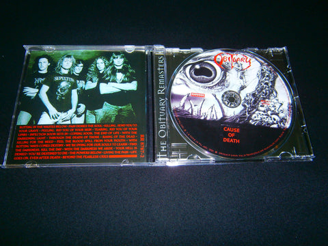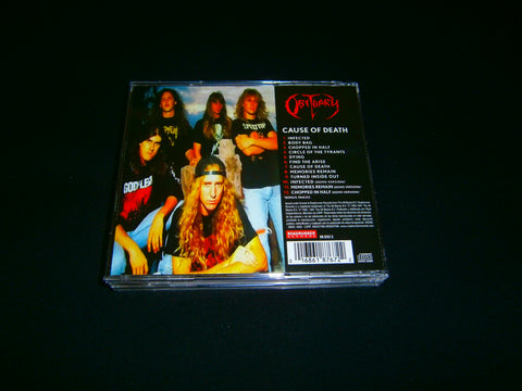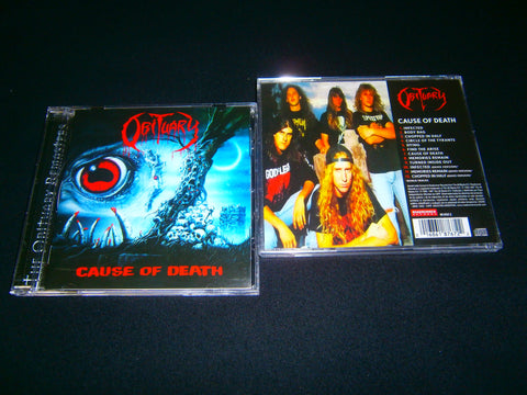 Obituary - Cause of Death. Reissue on CD format of their infamous 1990 2nd full length album with 12 tracks (including 3 demo version tracks as bonus) of their classic Death Metal from Florida. Limited remastered Edition comes with 8 pages booklet. Sealed Item. Essential for Collectors and Recommended for fans of Bolt Thrower, Asphyx and Autopsy.