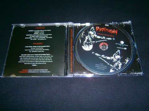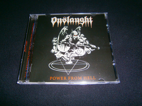 Onslaught - Power from Hell. 2011 reissue on CD format of their infamous 1985 first full length album with 14 tracks (including 2 bonus) of Thrash Metal from the UK. Limited 25th Edition comes with 12 pages booklet lyrics included. Sealed Item. Essential for Collectors and Recommended for fans of Razor, Exumer and Artillery.