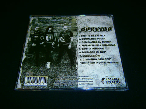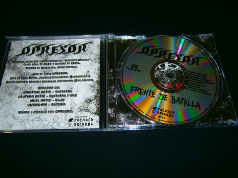 Opresor - Frente de Batalla. CD format of their 2024 2nd full length album with 8 tracks of Thrash Metal from Argentina. Limited Edition comes with 8 pages booklet lyrics included. Sealed Item. Recommended for fans of Exodus, Annihilator and Testament.