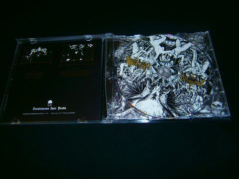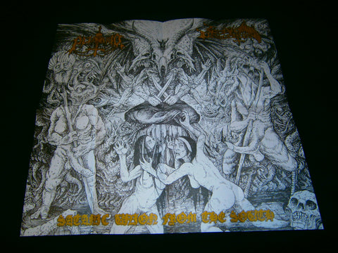Putrid / Grave Desecration - Satanic Union from the South. Split CD released in 2020 between these two Peruvian Black Death Metal and Death War Black Metal hordes with 3 tracks from each band. Limited Edition to 300 copies comes with slipcase and 4 pages booklet lyrics included+ poster. Sealed Item. Recommended for fans of Angelcorpse, Insulter and Holocausto.