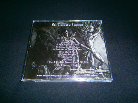 Putrid - The Triumph of Impurity. 2018 reissue of their infamous 2016 first full length album with 12 tracks of Blackened Death Metal from Peru. Limited Edition to 300 copies comes with alternate front artwork and three-folded panels lyrics included. Sealed Item. Recommended for fans of Angelcorpse, Impiety and Impurity.