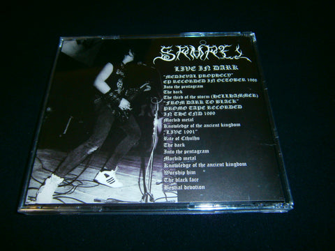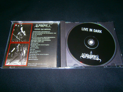Samael- Live in Dark. Rare CD format that includes the classic 1988 Medieval Prophecy 7" EP + From Dark to Black '89 promo reh tracks + live tracks from '91 era of pure dense Macabre & Obscure Metal. Limited Edition comes with 4 pages booklet. Essential for Collectors and Recommended for fans of Celtic Frost, Alastis and Hellhammer.