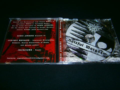 Seges Findere - Hateful Wargasm. CD format of their 2013 5th full length album with 8 tracks of Hatred Death Black Metal of War from Brazil. Limited Edition comes with 4 pages booklet. Sealed Item. Recommended for fans of Nyogthaeblisz, Thy Rites and Goatpenis.