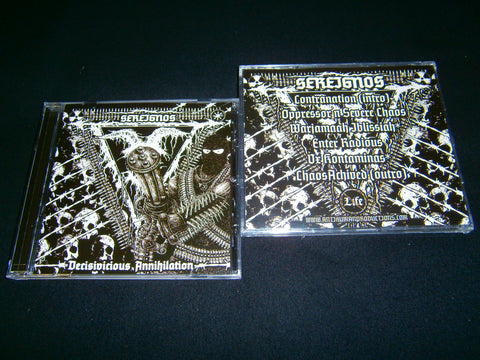 Sereignos - Decisivicious Annihilation. CD format of their 2023 EP with 6 tracks of War Death Black Metal from Indonesia. Limited Edition comes with 4 pages booklet. Sealed Item. Recommended for fans of Goatpenis, Archgoat and Impiety.
