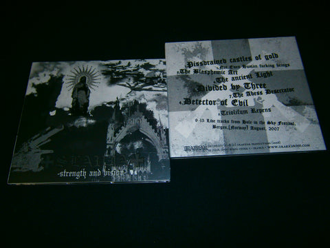 Slavia - Strength and Vision. 2008 reissue on digipak CD format of their 2007 first full length album with 8 Black Metal tracks from the album + 7 live tracks recorded from Hole in the Sky Festival at Bergen- Norway in August 2007. Limited Edition in three-folded digipak panels. Sealed Item. Essential for Collectors and Recommended for fans of Ad Hominem, Disiplin and Taake.