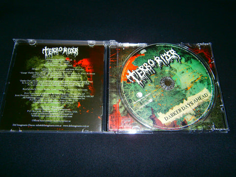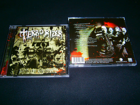 Terrorizer - Darker Days Ahead. CD format of their 2006 2nd full length album with 12 tracks of Grind Death Metal from the States. Limited Edition comes with 12 pages booklet lyrics included. Sealed Item. Essential for Collectors and Recommended for fans of Napalm Death, Repulsion and Brutal Truth.