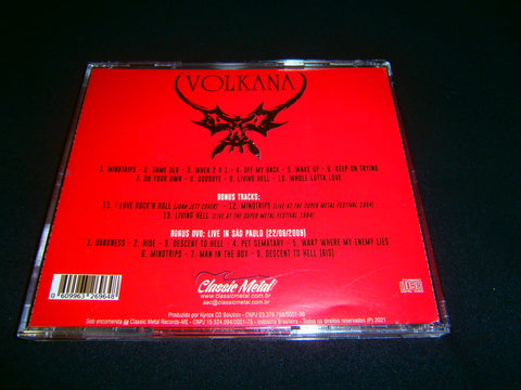 Volkana - Mindtrips. 2021 reissue on double CD format of their infamous 1994 2nd full length album includes: CD1: Mindtrips album with 13 tracks of Speed Thrash Metal (with bonus tracks). CD2: DVD Live in Sao Paulo 22/08/2009. Limited Edition comes with slipcase and 16 pages booklet lyrics included Sealed Item. Essential for Collectors. Recommended for fans of Original Sin, Piledriver and Acid.