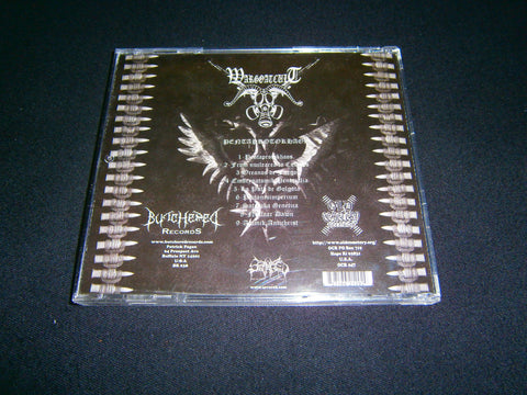 Wargoatcult - Pentaprotokhaos. CD format of their infamous 2011 first full length album with 9 tracks of War Black Death Metal from Spain. Limited Edition to 1000 copies comes with three-folded panels. Sealed Item. Recommended for fans of Teitan Blood, Archgoat and Black Witchery.