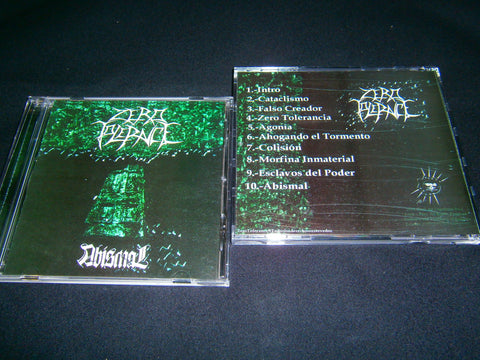 Zero Tolerance - Abismal. CD format of their 2014 first full length album with 10 tracks of Death Metal from Chile. Limited Edition comes with 4 pages booklet. Sealed Item. Recommended for fans of Decapitated, Meshuggah and Gojira.
