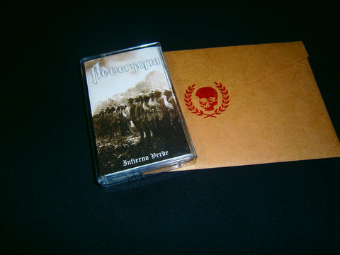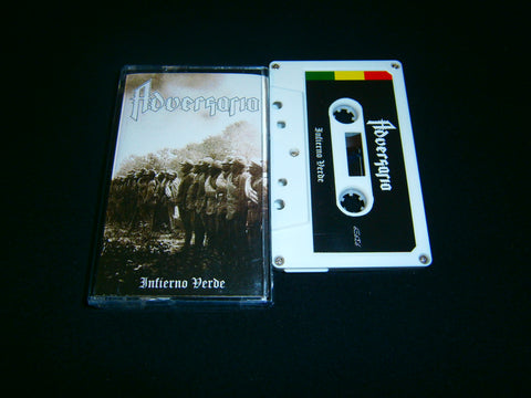 Adversario - Infierno Verde. Tape format of their 2024 EP with 2 tracks of Black War Metal from Bolivia. Limited Edition comes with 6 panels J-Card + 3 post cards + insert + pin. Sealed Item. Highly Recommended!!