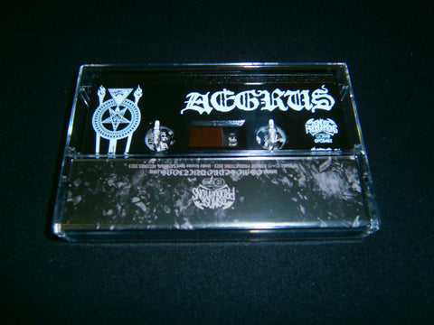 Aegrus - Thy Numinous Darkness. 2023 reissue on pro Tape format of their 2017 2nd full length album with 8 tracks of Black Metal from Finland. Limited Edition comes with 10 panels J-Card lyrics included. Sealed Item. Recommended for fans of Sargeist, Wolve's Winter and White Death.