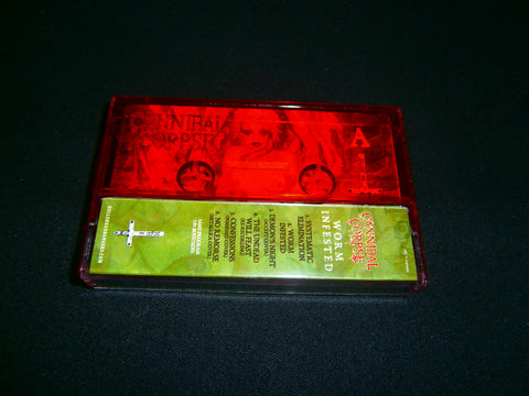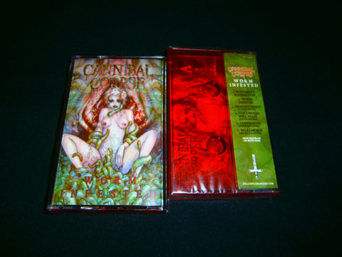 Cannibal Corpse - Worm Infested. 2023 reissue on pro Tape format of their 2003 EP with 6 tracks of Death Metal. Limited Edition comes with 8 tracks panels J-Card lyrics Included. Sealed Item. Essential for Collectors!!