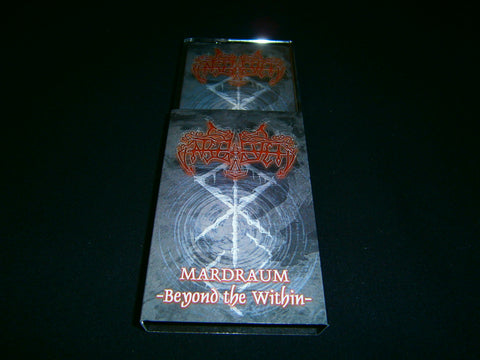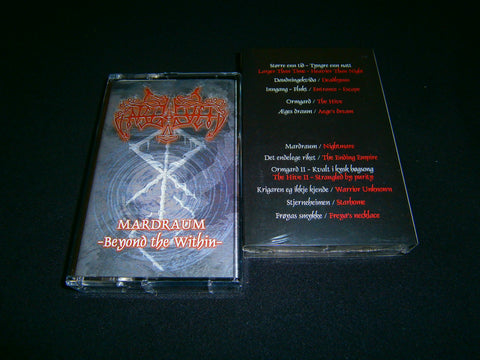 Enslaved - Mardraum (Beyond the Within). 2023 reissue on Pro Tape format of their 2000 5th full length album with 11 tracks of Progressive Viking Black Metal from Norway. Limited Edition comes with slipcase and 10 panels J-Card lyrics included. Sealed Item. Essential for Collectors and Recommended for fans of Solstafir, Windir and Kampfar.