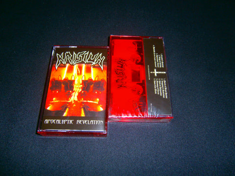 Krisiun - Apocalyptic Revelation. 2024 reissue on pro Tape format of their infamous 1998 2nd full length album with 9 tracks of Obscure Death Metal from Brazil. Limited Edition comes with 7 panels J-Card lyrics included. Sealed Item. Recommended for fans of Diabolic, Vital Remains and Deicide.
