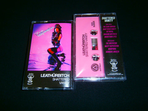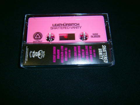 Leathurbitch - Shattered Vanity. Pro Tape format of their 2023 2nd full length album with 9 tracks of Speed Heavy Metal from the States. Limited Edition comes with 4 panels J-Card. Sealed Item. Recommended for fans of Savage Grace, Solicitor and Armory.