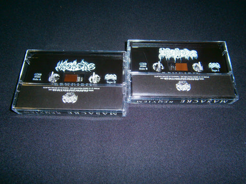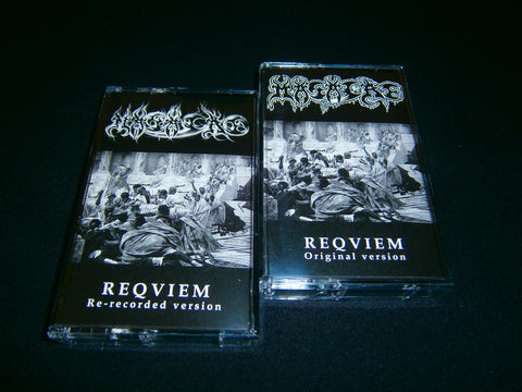 Masacre - Reqviem. 2023 reissue on double pro Tape format of their infamous 1991 first full length album includes Tape1: 1991 original album version. Tape2: re-recorded version. Limited Edition comes with 7 panels J-Card lyrics included. Sealed Item. Essential for Collectors and Recommended for fans of Morbid Angel, Parabellum and Sarcofago.