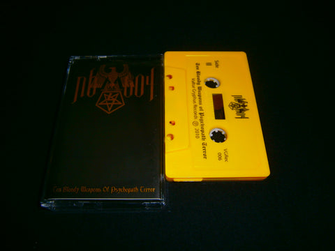 NB-604 - Ten Bloody Weapons of Psychopath Terror. Pro Tape format released in 2010 that compiles 14 tracks of Black metal from Ecuador. Limited Edition to 200 hand numbered copies, comes with 8 folded panels J-Card. Sealed Item. Essential for Collectors and Recommended for fans of Grimorium Verum, Vulcano and Abhor.