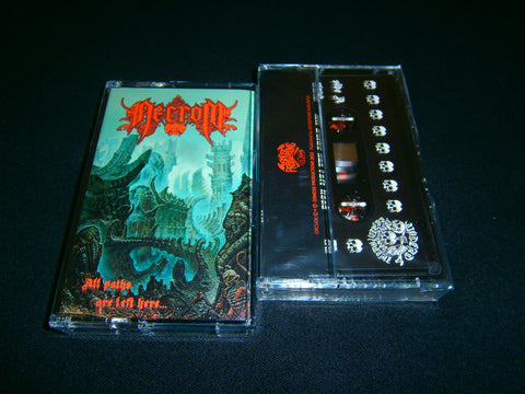 Necrom - All Paths Are Left Here... Tape format of their 2022 first full length album with 10 tracks of Death Metal from Ukraine. Limited Edition to 200 copies comes with 10 panels J-Card lyrics included. Sealed Item. Recommended for fans of Nihilist, Entombed and Grave.